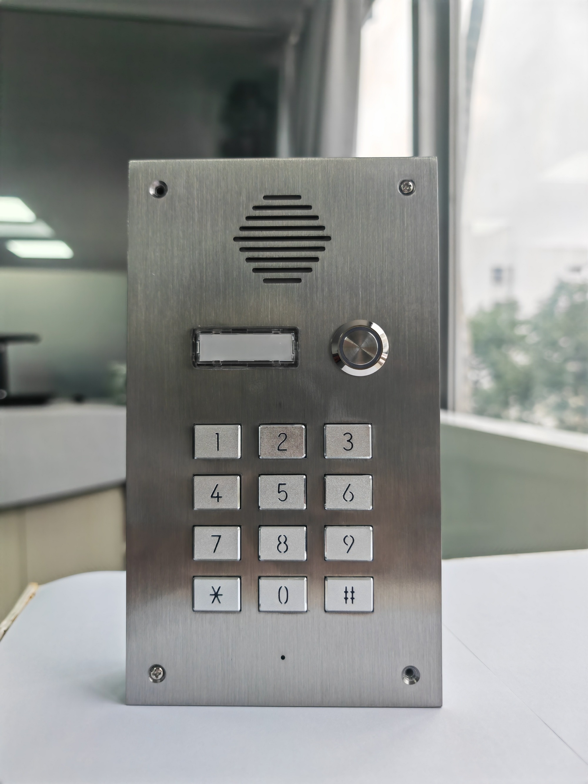 This product supports one SIM card (one per device) and enables calling functionality via 4G. It is set up to be able to make calls to existing landlines or mobile phones, and communication with visitors can be achieved simply by answering the call. Made of stainless steel, it is durable and sturdy.