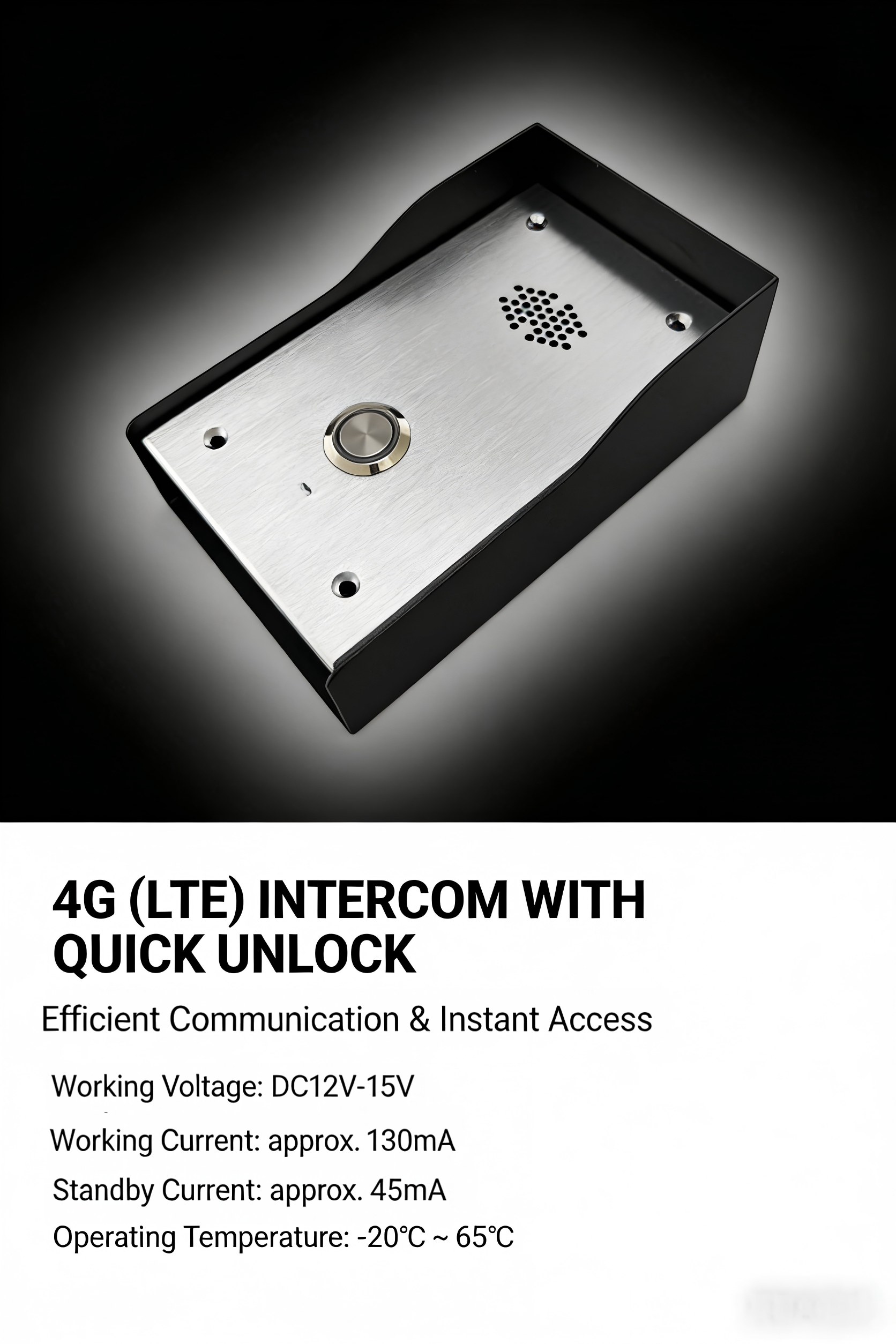 This 4G audio villa outdoor station is specially designed for high-end villas, manors, detached houses, and overseas projects . Adopting LTE 4G mobile communication technology, it requires no WiFi or network cabling. Visitors can call with one press; homeowners answer calls, talk, and unlock remotely. Stable and reliable, it is an ideal choice for high-end outdoor access control.